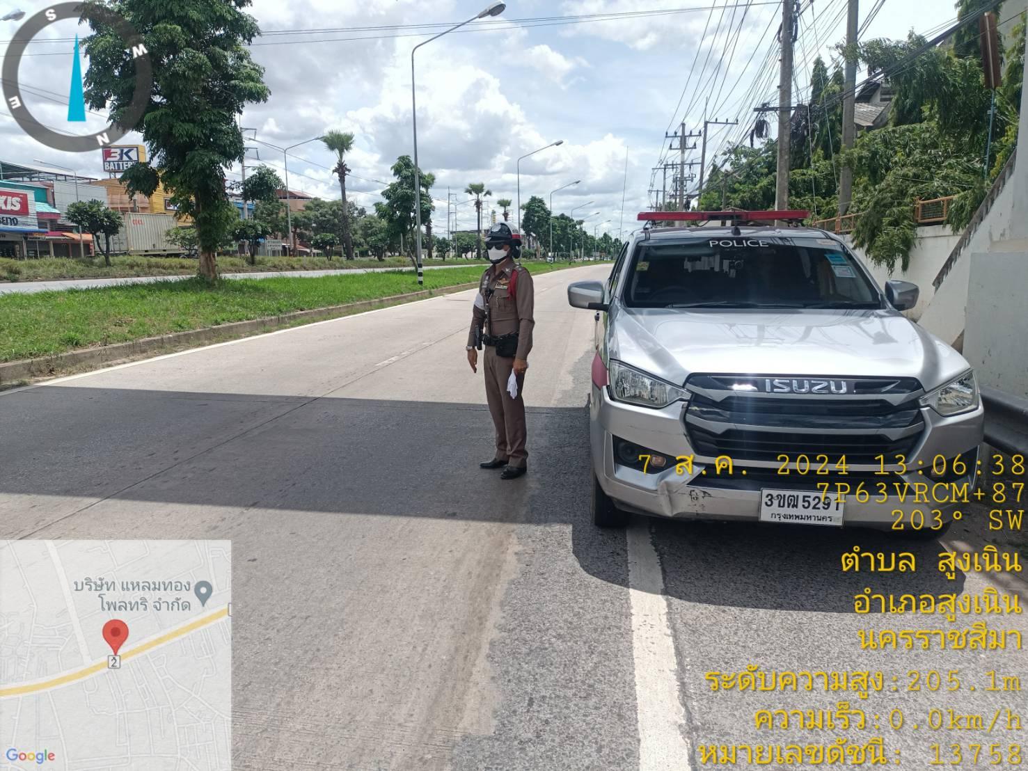สถานีตำรวจภูธรสูงเนิน ขอรายงานถนนมิตรภาพจุดสะพานลอยหน้าบริษัทแหลมทอง กม.116+500 ในวันที่ 7 ส.ค.67 เว