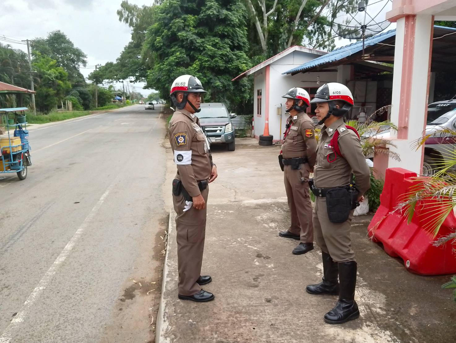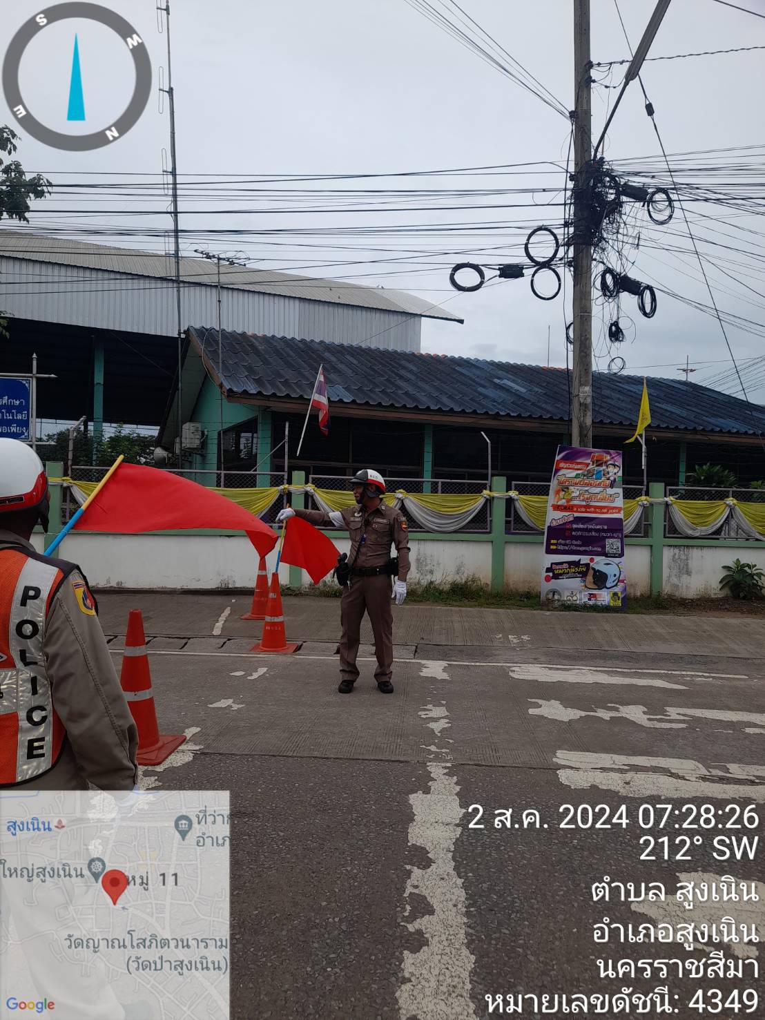 ร.ต.ต.วิเชียร แย้มสูงเนิน รอง สว.(ป)พร้อมพวก ว.4 อำนวยความสะดวกการจราจร ที่ถนนหน้าโรงเรียนสูงเนิน