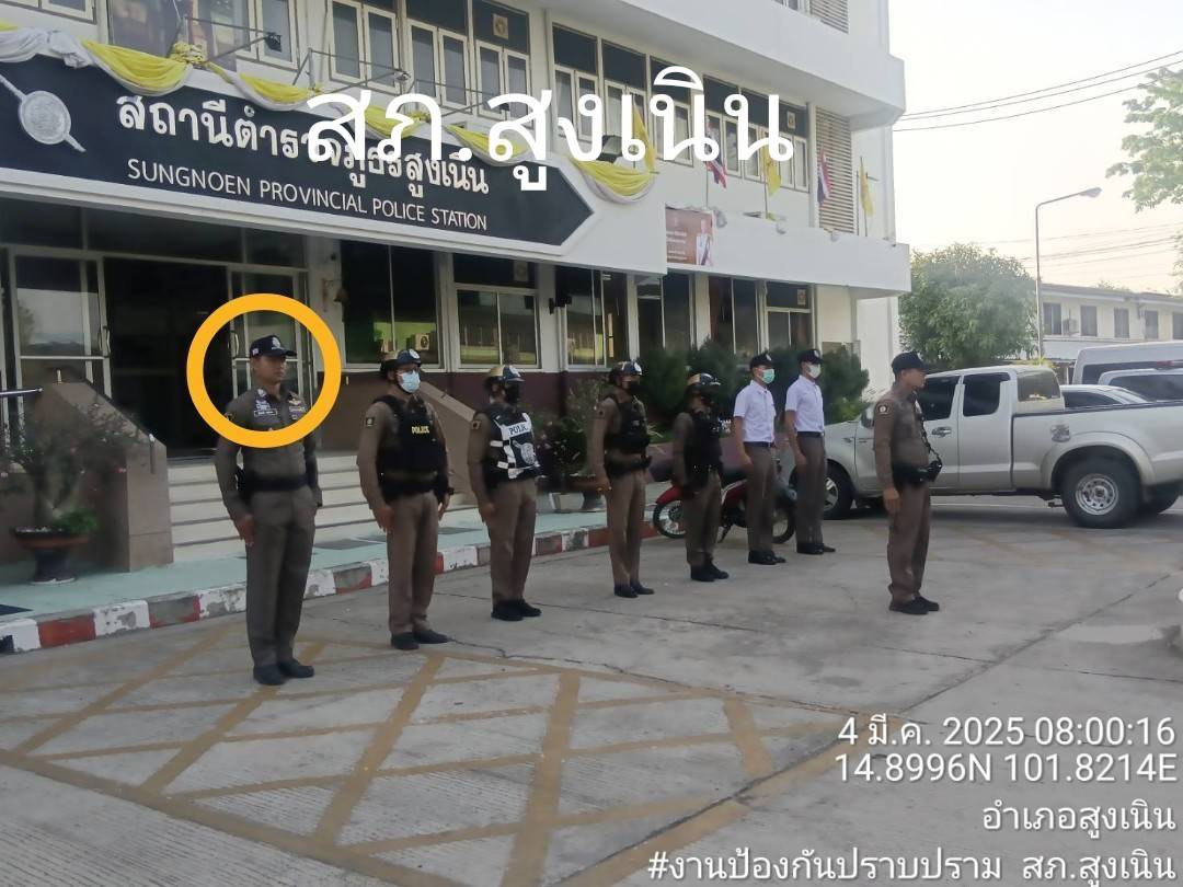 เรียน ผู้บังคับบัญชา สภ.สูงเนิน ภ.จว.นครราชสีมา วันนี้ 4 มีนาคม 2568 เวลา 08.00 น. พ.ต.ท.พิทักษ์ วงษ
