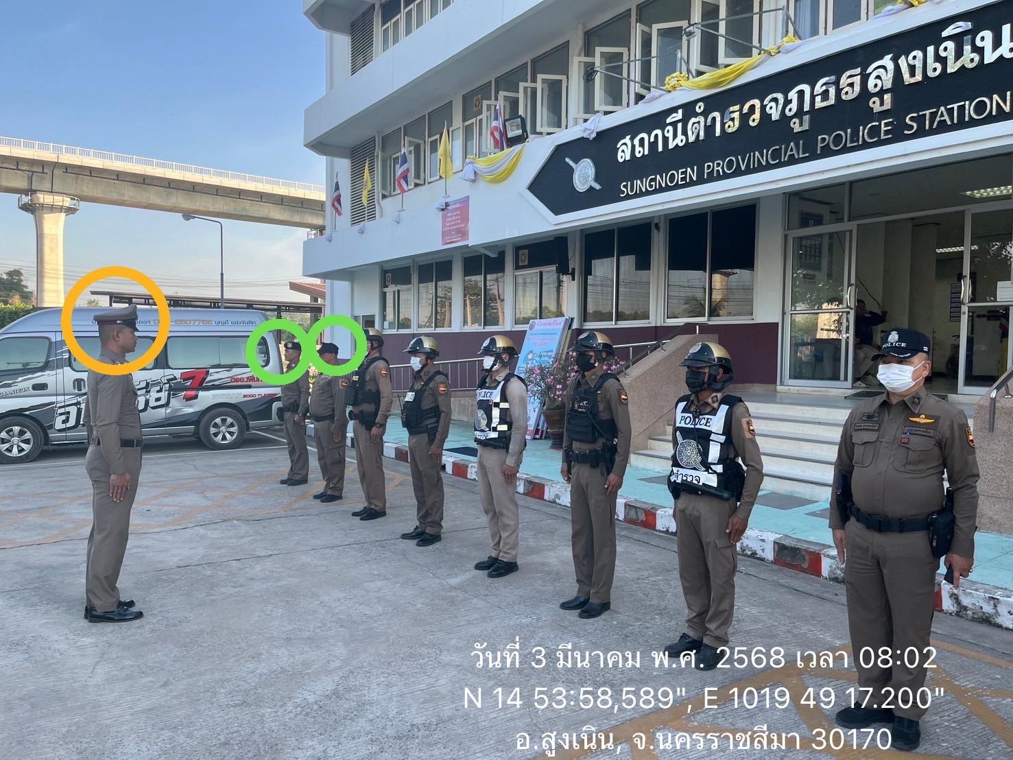 รียน ผู้บังคับบัญชา สภ.สูงเนิน ภ.จว.นครราชสีมา วันนี้ 3 มีนาคม 2568 เวลา 08.00 น. พ.ต.ท.พิทักษ์ วงศ์