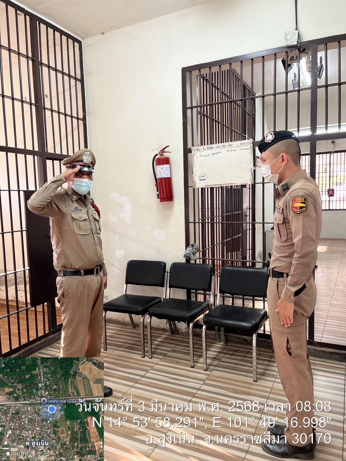 รียน ผู้บังคับบัญชา สภ.สูงเนิน วันนี้(3 มี.ค.68)เวลา08.05น.สูงเนิน 2-0 ตรวจห้องควบคุมผู้ต้องหา พบร.ต
