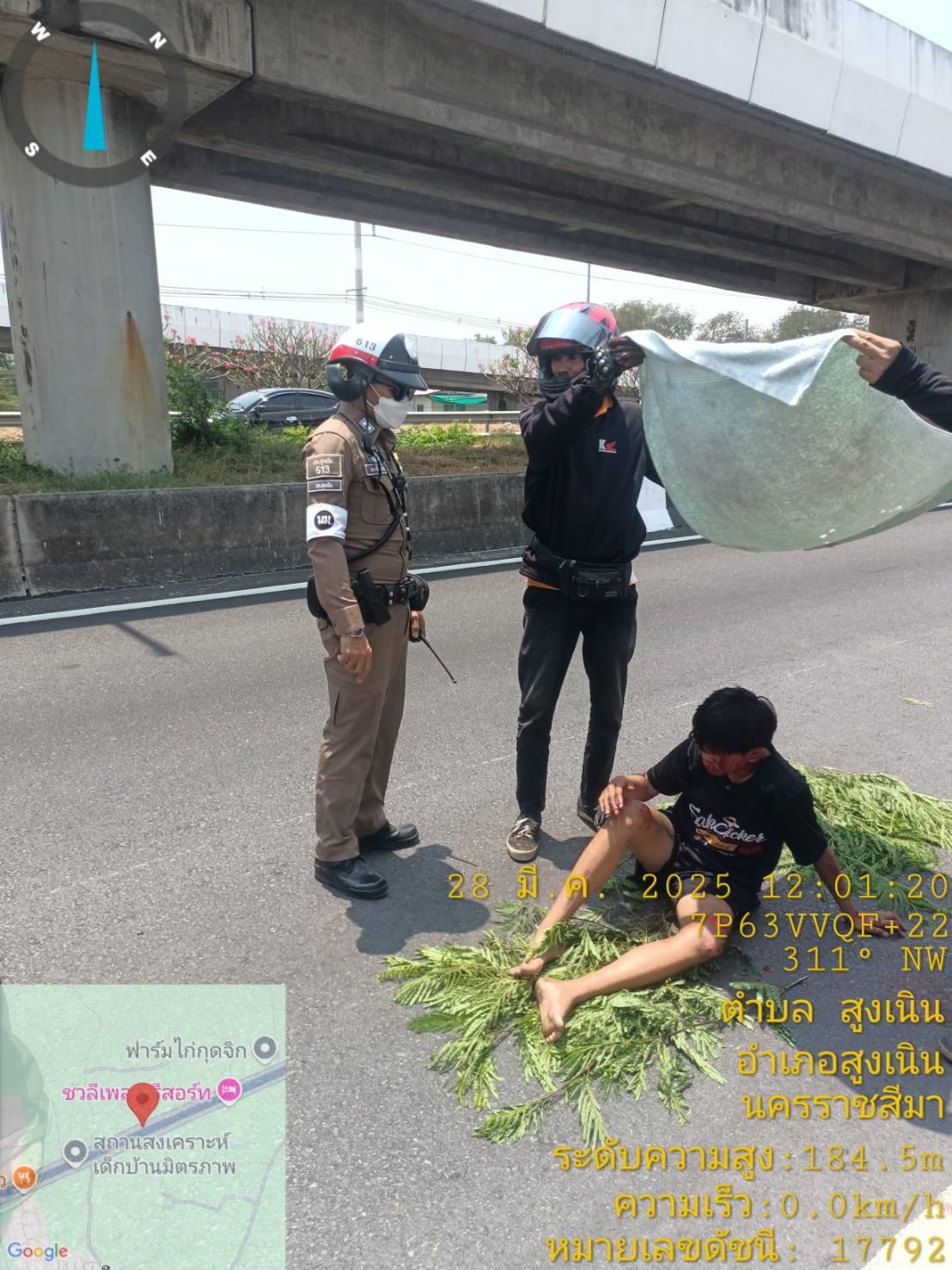 สายตรวจจราจรสภ.สูงเนิน ช่วยเหลือผู้ขับขี่รถจักรยานยนต์ประสบอุบัติเหตุล้มเอง