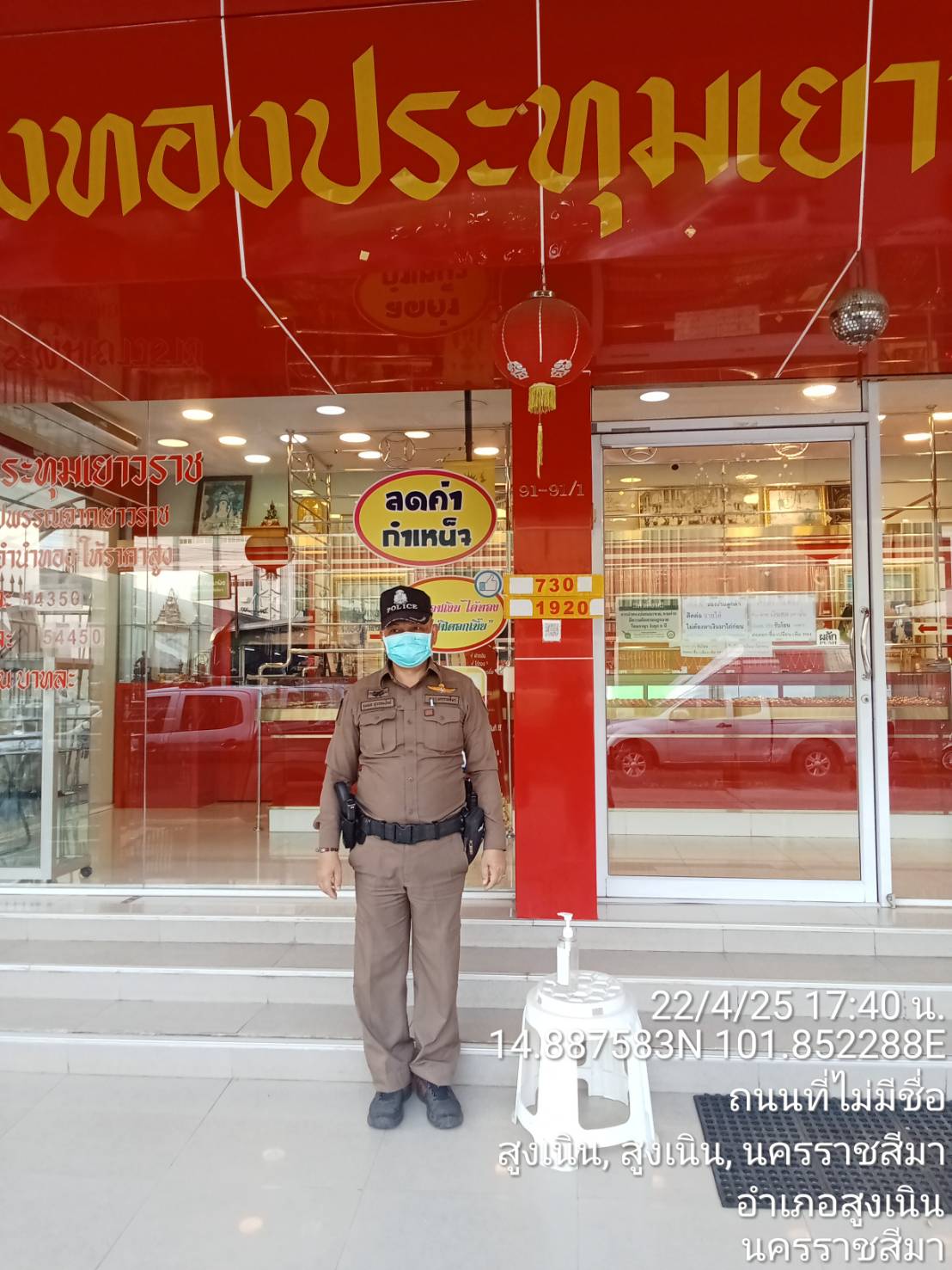 เรียนผู้บังคับบัญชา สูงเนิน 20 สายตรวจรถยนต์ ว.4 ป้องกันเหตุ ร้านทองหลังบริษัทซีเกท เหตุการณ์ปกติ จึ