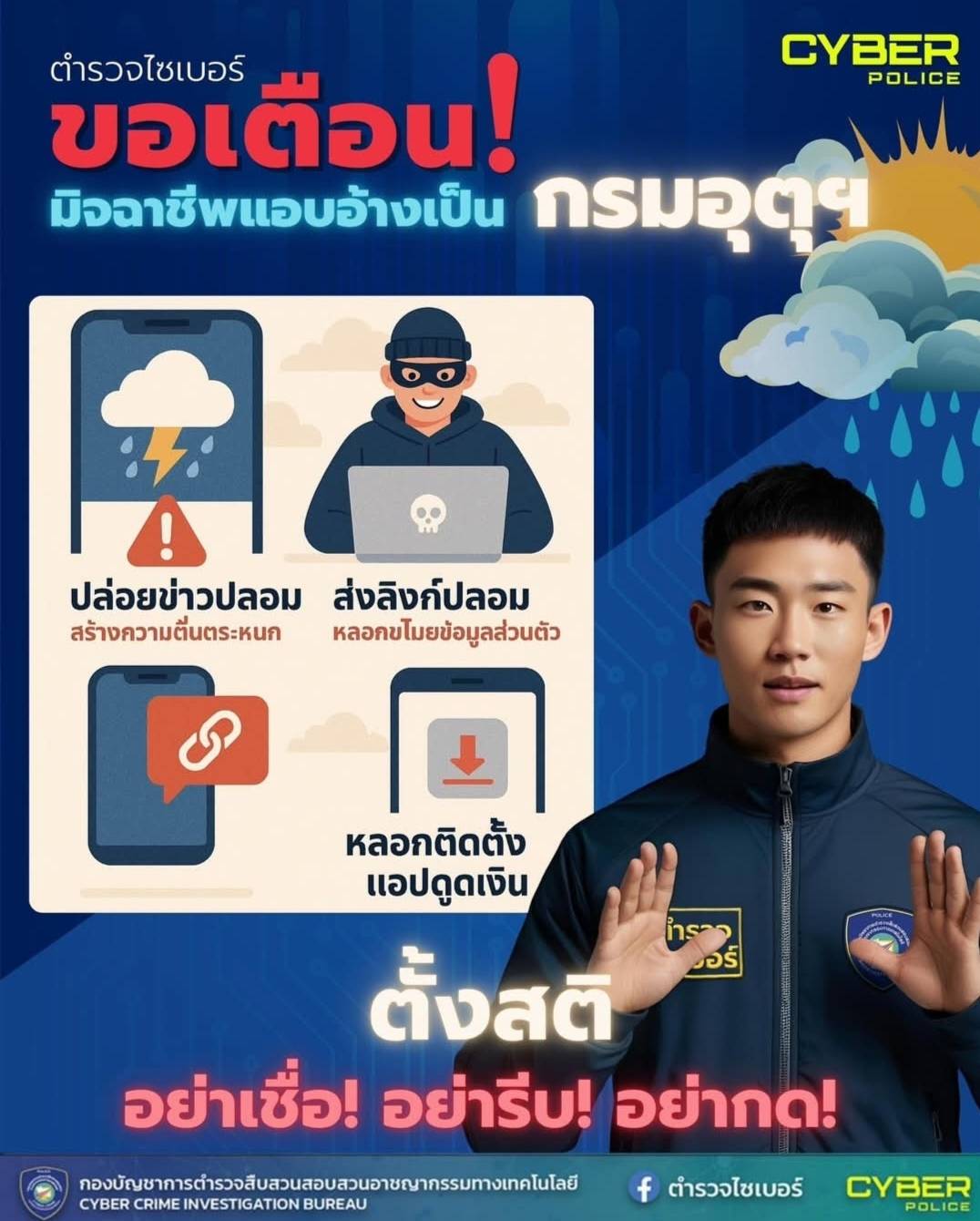 ตำรวจเตือนภัย “มิจฉาชีพแอบอ้างเป็นกรมอุตุฯ”