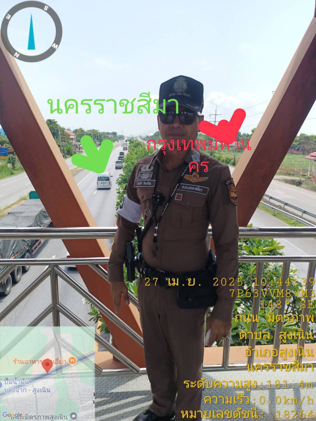 รายงานถนนมิตรภาพจุดสะพานลอยบุใหญ่ กม.120+500 ในวันที่ 27 เมษายน 2568 เวลาประมาณ 10.44 น. 1. ขาเข้า ก