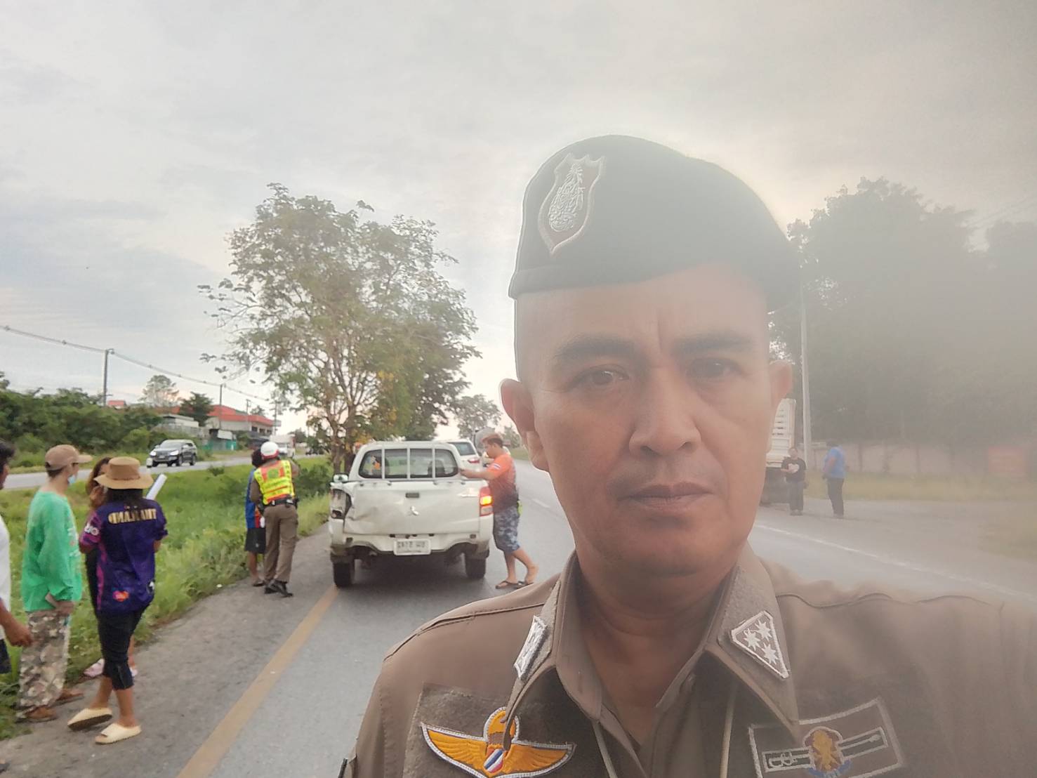 เรียนผู้บังคับบัญชา สูงเนิน 60 สายตรวจจราจร ว 4เหตุว 40 รถกระบะเสียหลักหมุนชน 6 ล้อไม่มีผู้ได้รับบาด