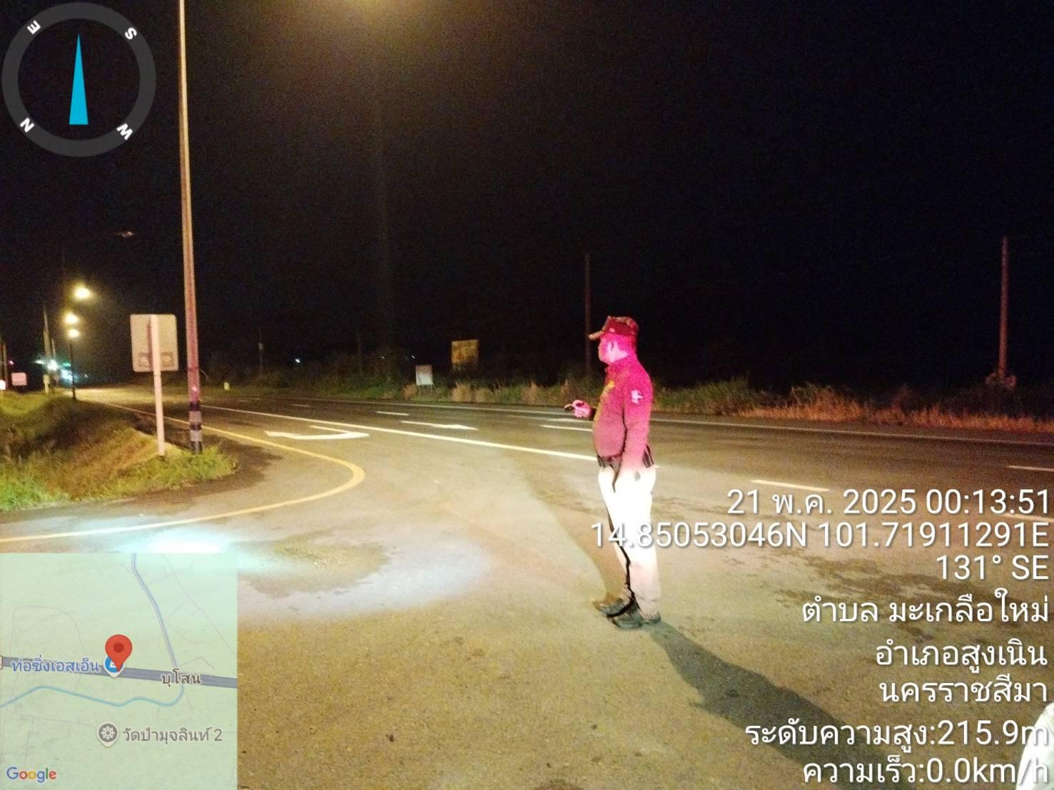 สถานีตำรวจภูธรสูงเนิน ขอรายงานถนนมิตรภาพจุดสะพานลอยหน้าบริษัทชีเกท กม.119 ในวันที่ 21 พฤษภาคม 2568 เ