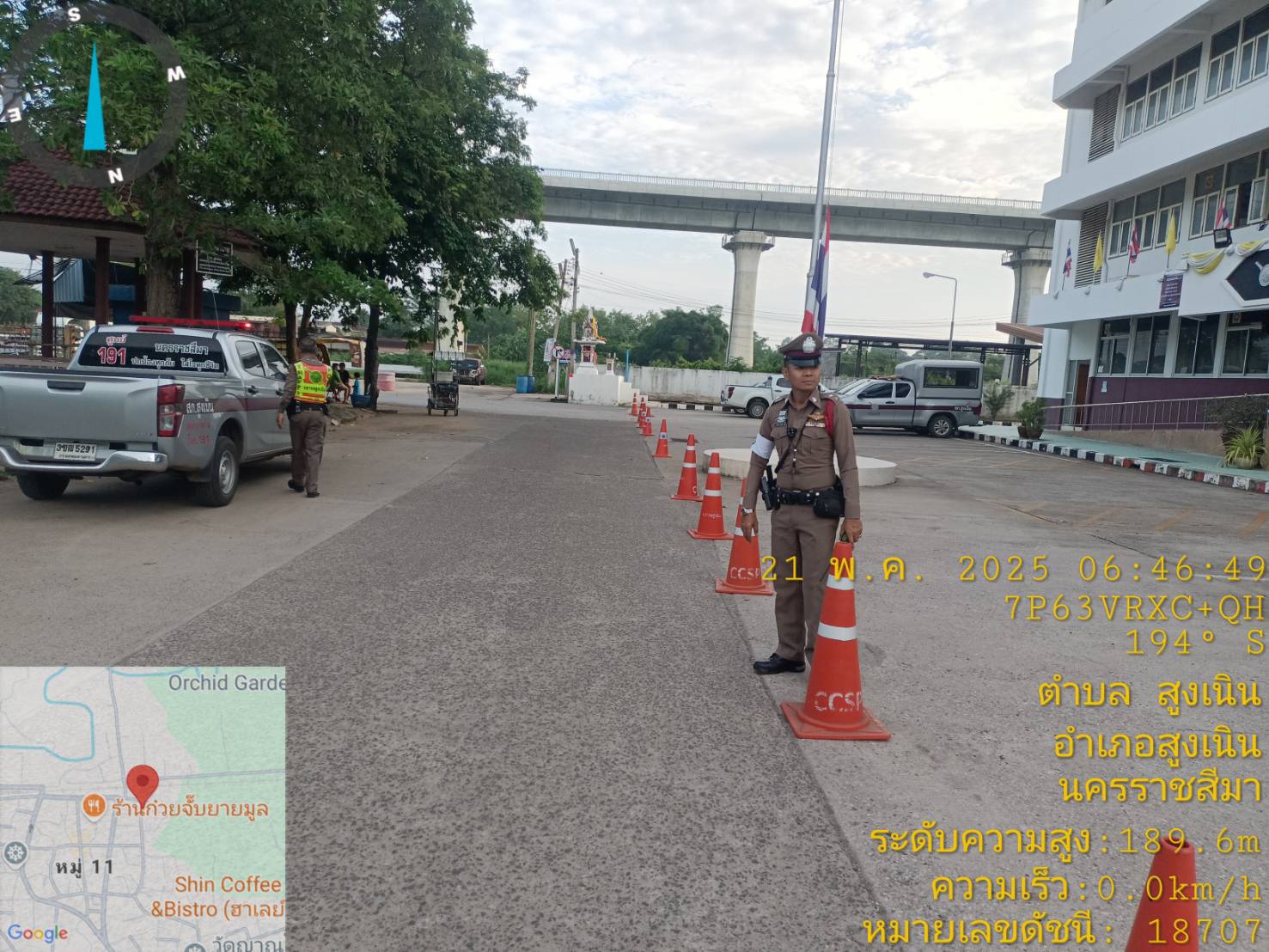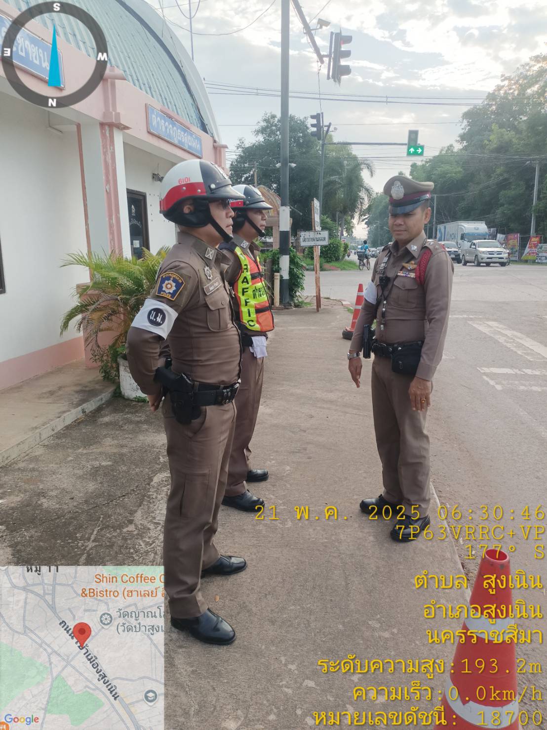 เรียน ผู้บังคับบัญชา สภ.สูงเนิน ภ.จว.นม. วันนี้ 21 พ.ค. 68 / สน.60 พร้อมชุดจราจร วางกรวยยางเตรียมพื้