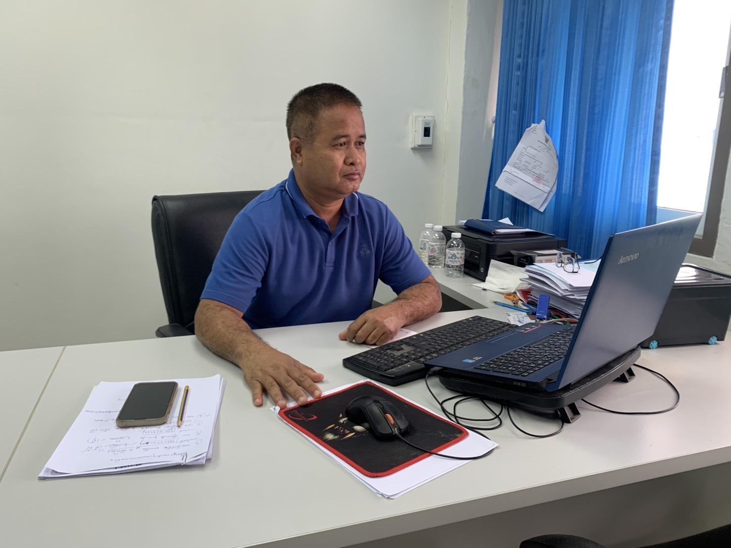 พ.ต.ท.ณัฐวุฒิ บุญสิงห์ รอง ผกก.สส.สภ.สูงเนิน เฝ้าฟังการประชุม บริหารงานสืบสวน ตร. ผ่านระบบ zoom ณ ห้องประชุม สภ.สูงเนิน