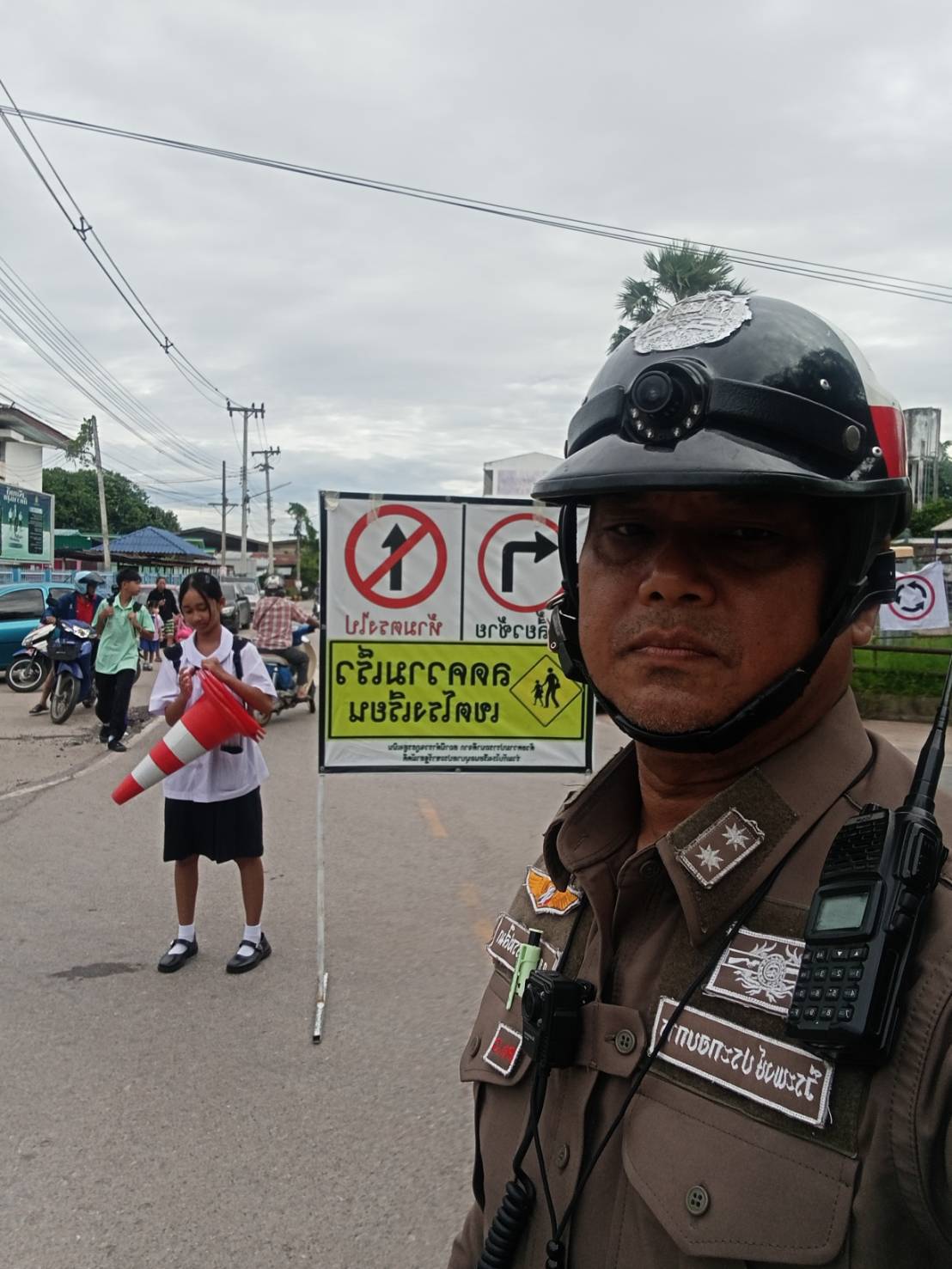 จราจร6102อำนวยความสะดวกการจราจรหน้าโรงเรียนอนุบาลจุรีพันธ์