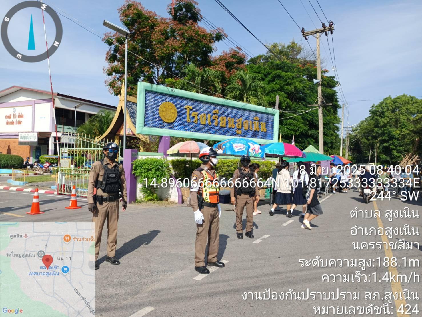 เรียน ผู้บังคับบัญชา สภ.สูงเนิน ภ.จว.นม. สน.60 พร้อมชุดจราจร อำนวยความสะดวกการจราจรหน้าโรงเรียนสูงเน