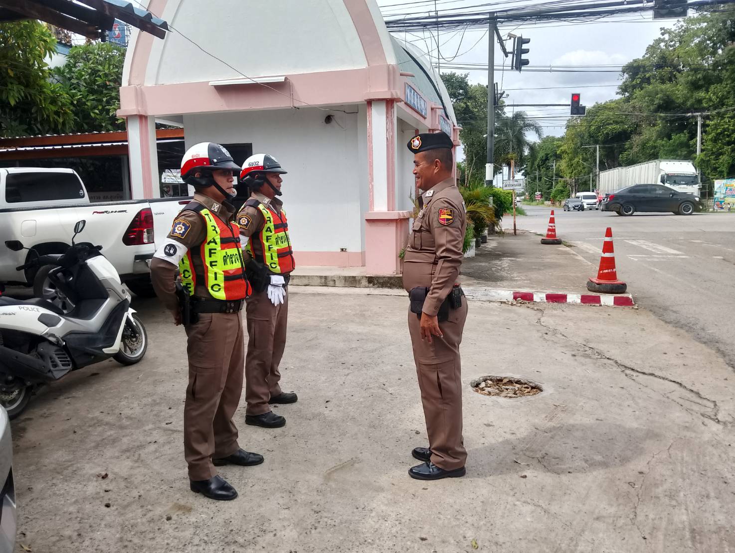 ันนี้ 15 ก.ค.2568 เวลา 15.05 น. ร.ต.อ.ไพฑูรย์ ทิพย์ขุนทด รอง สวป.ร้อยเวรจราจร ได้เรียกแถวสายตรวจจราจ