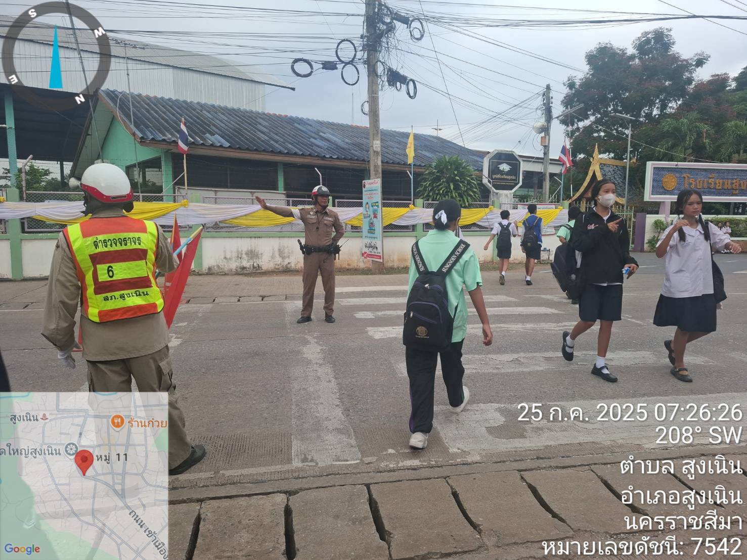 วันที่ 25 ก.ค.2568 เวลา 07.10-08.00 น.ร.ต.ต.วิเชียร แย้มสูงเนิน รอง สว.(ป)จราจรเวรฯ พร้อมด้วยคุณครูเ