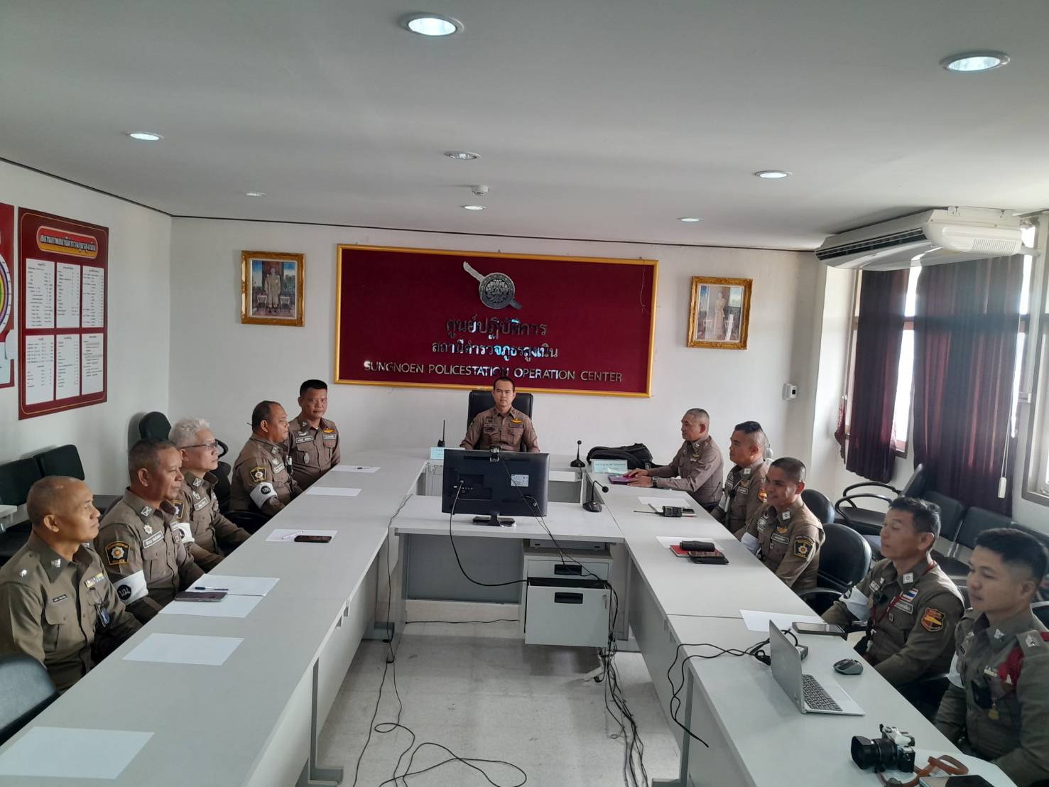 พ.ต.ท.สมชาย บุญโญปกรณ์ รอง ผกก.(สอบสวน)สภ.สูงเนิน เฝ้าฟังการประชุม ศปอส.ตร. ผ่านระบบ ZOOM ภ.จว.นครราชสีมา