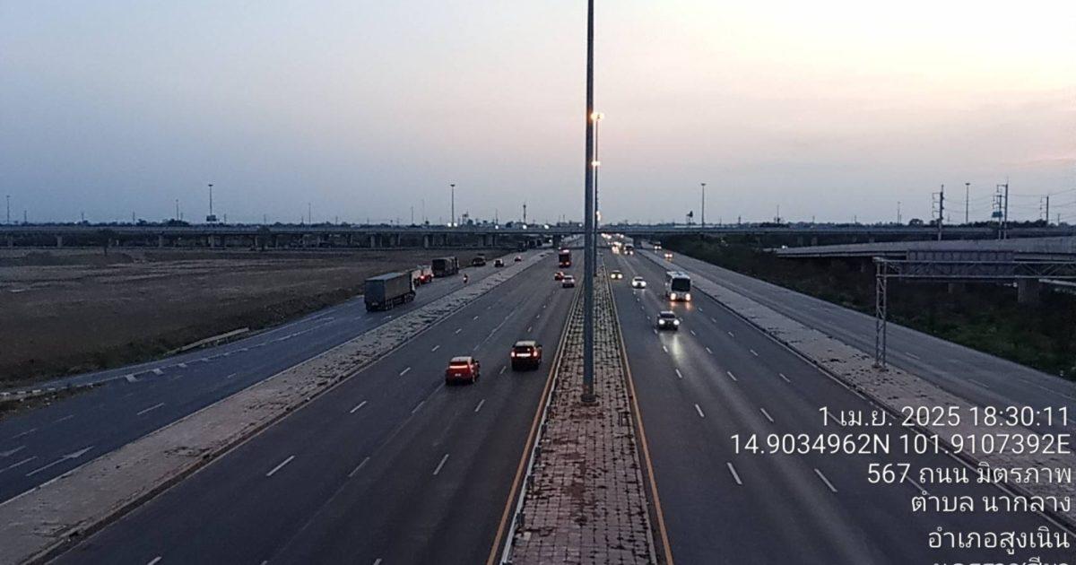 ขอรายงานถนนมิตรภาพบริเวรสะพานต่างระดับห้วยตะคร้อ.ก.ม.127