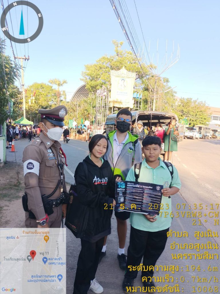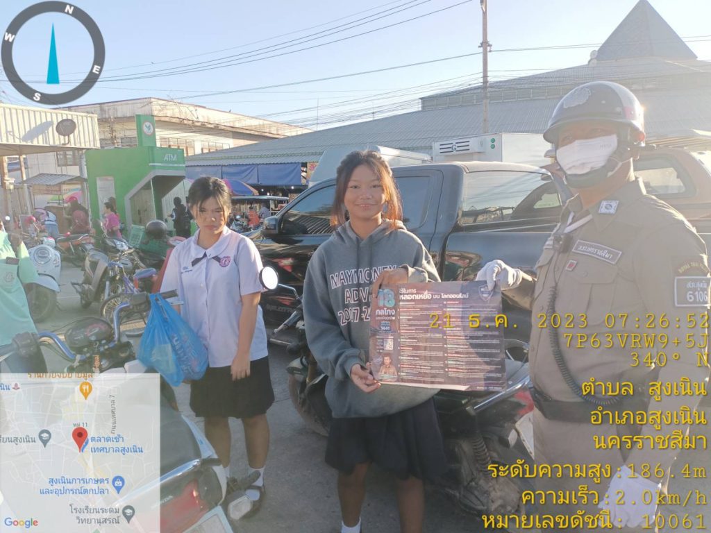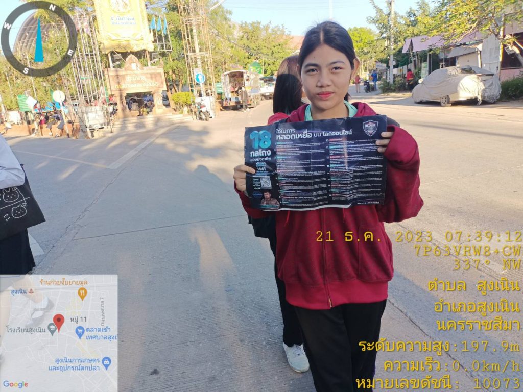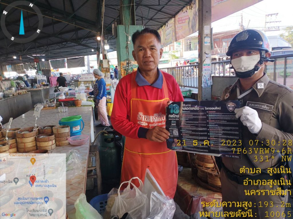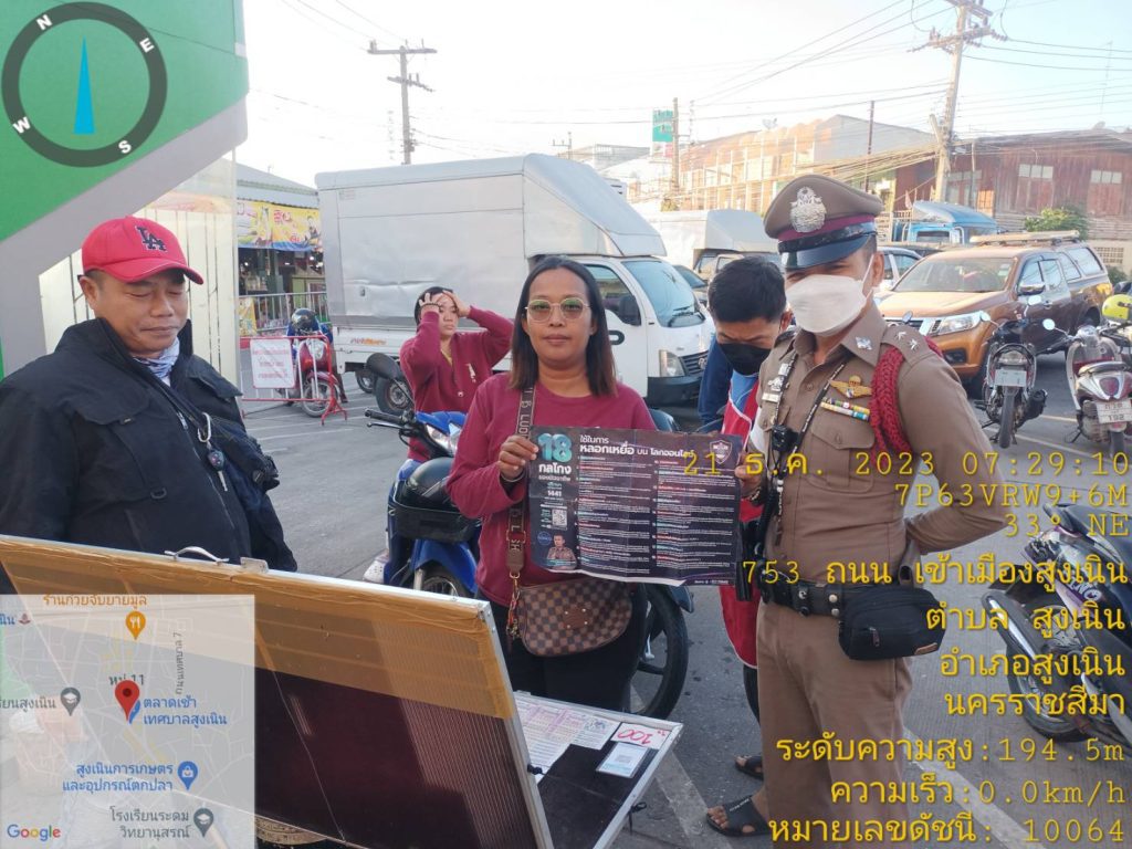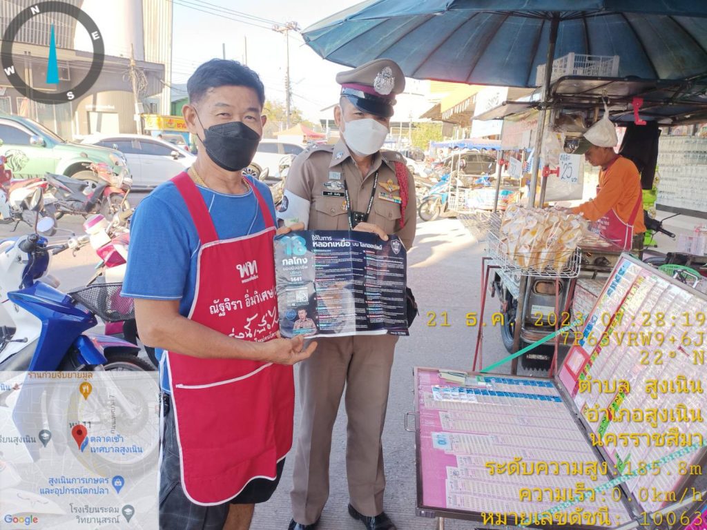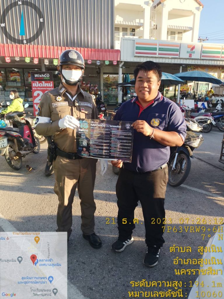 วันที่ 21 ธ.ค. 2566 เวลาประมาณ 07.00 น. ร.ต.ท.สมบัติ อัคเสริญ รอง สว.(ป) สภ.สูงเนิน ปฏิบัติหน้าที่ร้อยเวรจราจร (สน.60 ) พร้อมสายตรวจจราจร สภ.สูงเนิน ได้อำนวยความสะดวกการจราจร / หน้าโรงเรียน /ตลาดเช้า เมื่อการจราจรเข้าสู่ภาวะปกติ จึงได้พบปะประชาชนบริเวณตลาดเช้าสูงเนิน เพื่อประชาสัมพันธ์ 18 สื่อกลโกงออนไลน์ในเขตเทศบาลสูงเนิน เพื่อให้ประชาชนมีความรู้ไม่ตกเป็นเหยี่อของแก๊งคอลเซ็นเตอร์ ตามนโยบายของผู้บังคับบัญชาต่อไป