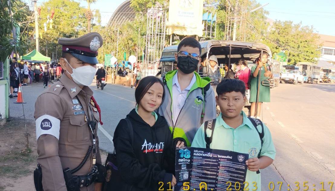 วันที่ 21 ธ.ค. 2566 เวลาประมาณ 07.00 น. ร.ต.ท.สมบัติ อัคเสริญ รอง สว.(ป) สภ.สูงเนิน ปฏิบัติหน้าที่ร้อยเวรจราจร (สน.60 ) พร้อมสายตรวจจราจร สภ.สูงเนิน ได้อำนวยความสะดวกการจราจร / หน้าโรงเรียน /ตลาดเช้า เมื่อการจราจรเข้าสู่ภาวะปกติ จึงได้พบปะประชาชนบริเวณตลาดเช้าสูงเนิน เพื่อประชาสัมพันธ์ 18 สื่อกลโกงออนไลน์ในเขตเทศบาลสูงเนิน เพื่อให้ประชาชนมีความรู้ไม่ตกเป็นเหยี่อของแก๊งคอลเซ็นเตอร์ ตามนโยบายของผู้บังคับบัญชาต่อไป