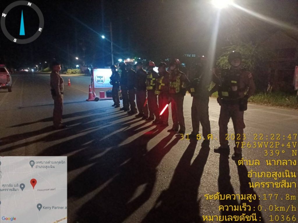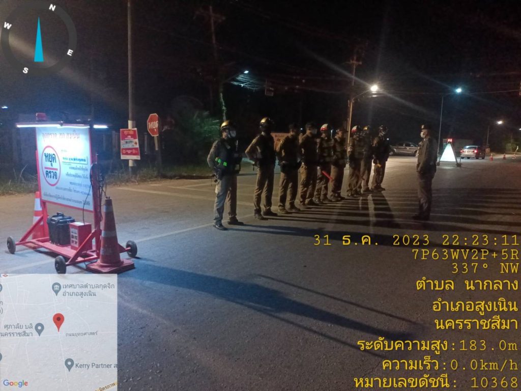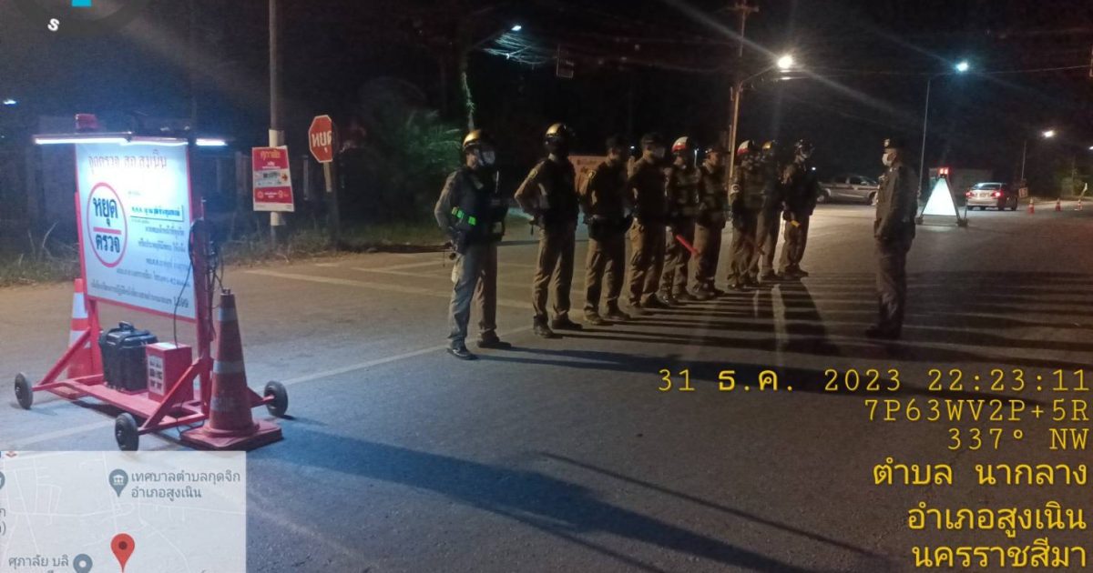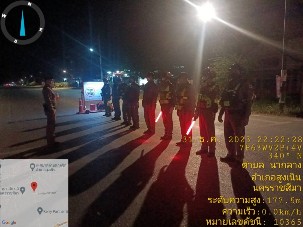 วันที่ 31 ธ.ค.2566 เวลา 21.00 – 24.00 น. ภายใต้การอำนวยการของ พ.ต.อ.ศุภวัชร อังคสยาวัฒน์ ผกก.สภ.สูงเนิน,พ.ต.ท.พิทักษ์ วงศ์อาจ รอง ผกก.ป.สภ.สูงเนิน มอบหมายให้ พ.ต.ต.ญาณวุฒิ ชินทุมพงษ์ สวป.สภ.สูงเนิน พร้อม สายตรวจรถยนต์,สายตรวจรถจักรยานยนต์ สายตรวจจราจร ร่วมตั้ง จุดตรวจกวดขันวินัยจราจรเพื่อป้องกันอุยัติเหตุ ณ.สี่แยกไฟแดงกุดจิก ต.กุดจิก อ.สูงเนิน จ.นครราชสีมา