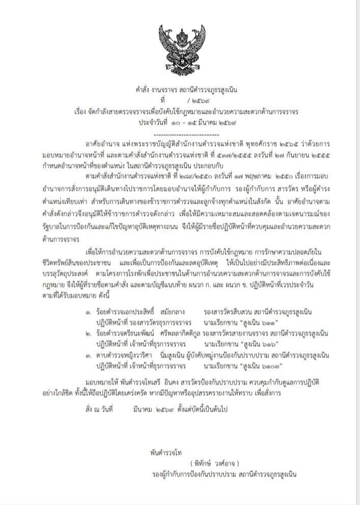 งานจราจร ขออนุญาตแจ้งคำสั่งที่ /2569 ลงวันที่ 10 มี.ค.69 เรื่อง การจัดกำลังเจ้าหน้าที่ตำรวจที่ปฏิบัต