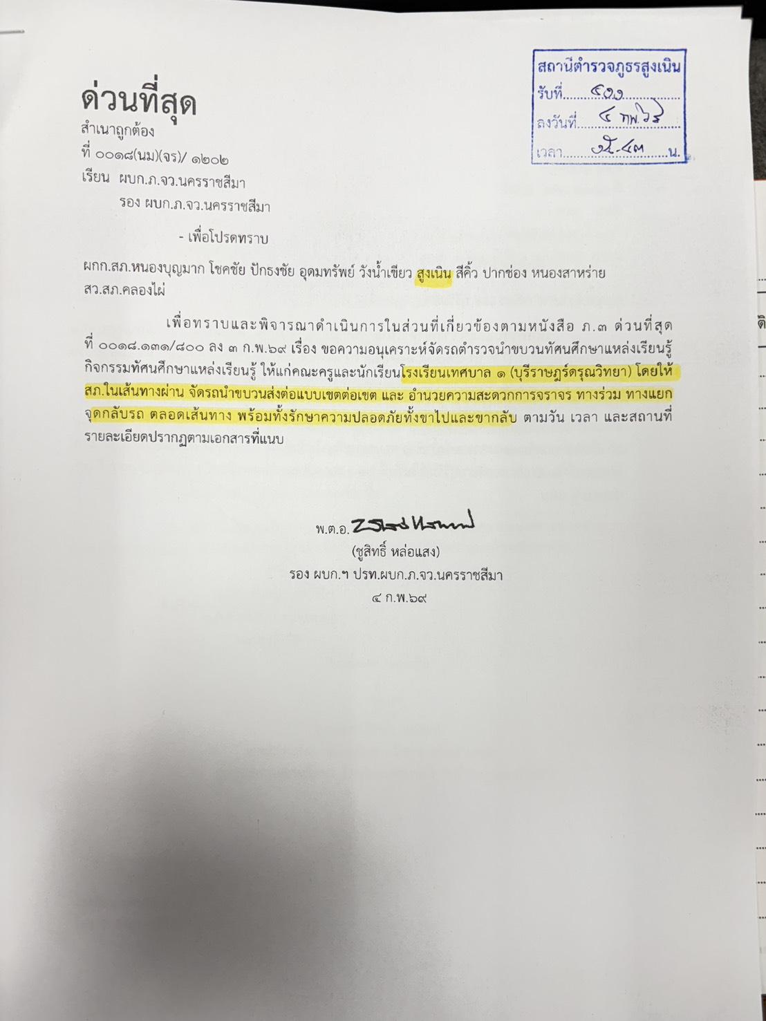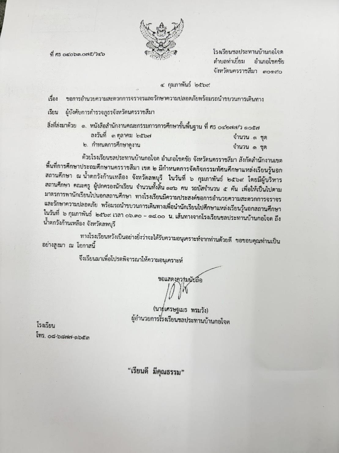 เรียน ผู้บังคับบัญชา แจ้งนำขบวนคณะครูและนักเรียนโรงเรียนชลประทานบ้านกอโจด ในวันที่ 6 ก.พ.69 โดยให้ ส