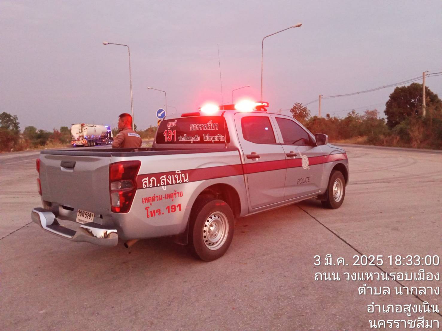 เรียน ผู้บังคับบัญชาเพื่อโปรดทราบ สภ.สูงเนิน จว.นครราชสีมา ขอรายงานเหตุน่าสนใจ อุบัติเหตุรถหกล้อติดต