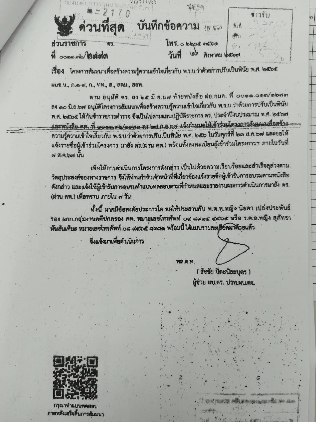 แจ้งแก้ไขนามเรียกขาน และการมอบหมายงาน รอง ผบก.ภ.จว.นครราชสีมา