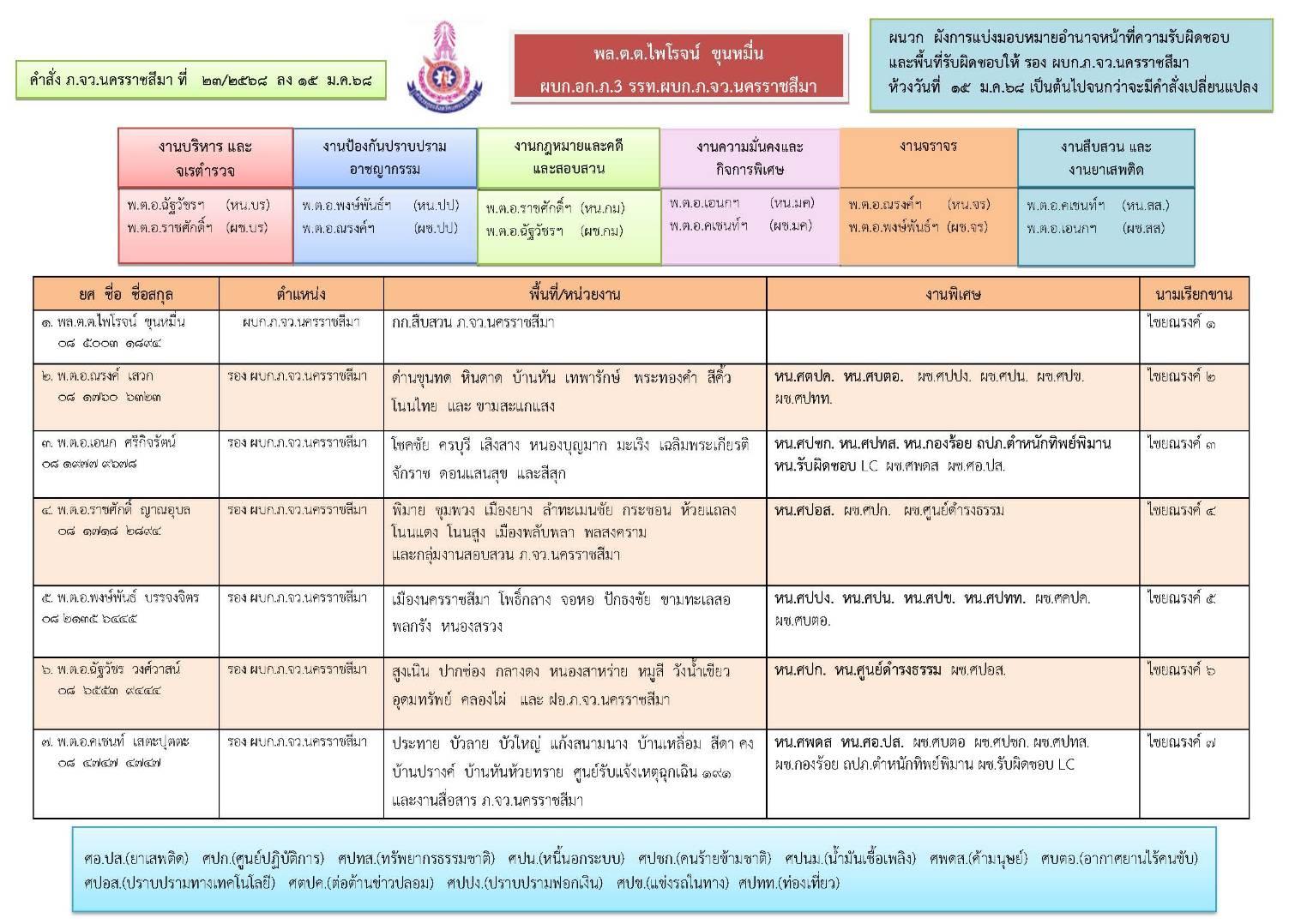 @All สภ.ทุกแห่งในสังกัด แจ้งแก้ไขนามเรียกขาน และการมอบหมายงาน รอง ผบก.ภ.จว.นครราชสีมา รายละเอียดปราก