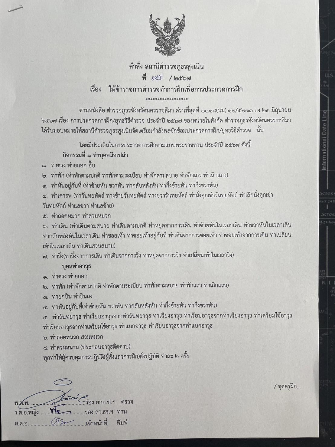 ข้อสั่งการ รอง ผบก.ภ.จว.นครราชสีมา 1.กำชับ ตร.ปฏิบัติตามนโยบายนายกรัฐมนตรี 11 ข้อ 2.ปราบปรามจับกุมบ่