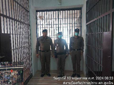 สภ.สูงเนิน วันนี้(10 พ.ค.67)เวลา08.10น.สูงเนิน 2-0 ตรวจห้องควบคุมผู้ต้องหา พบสิบเวรอยู่ปฏิบัติหน้าที