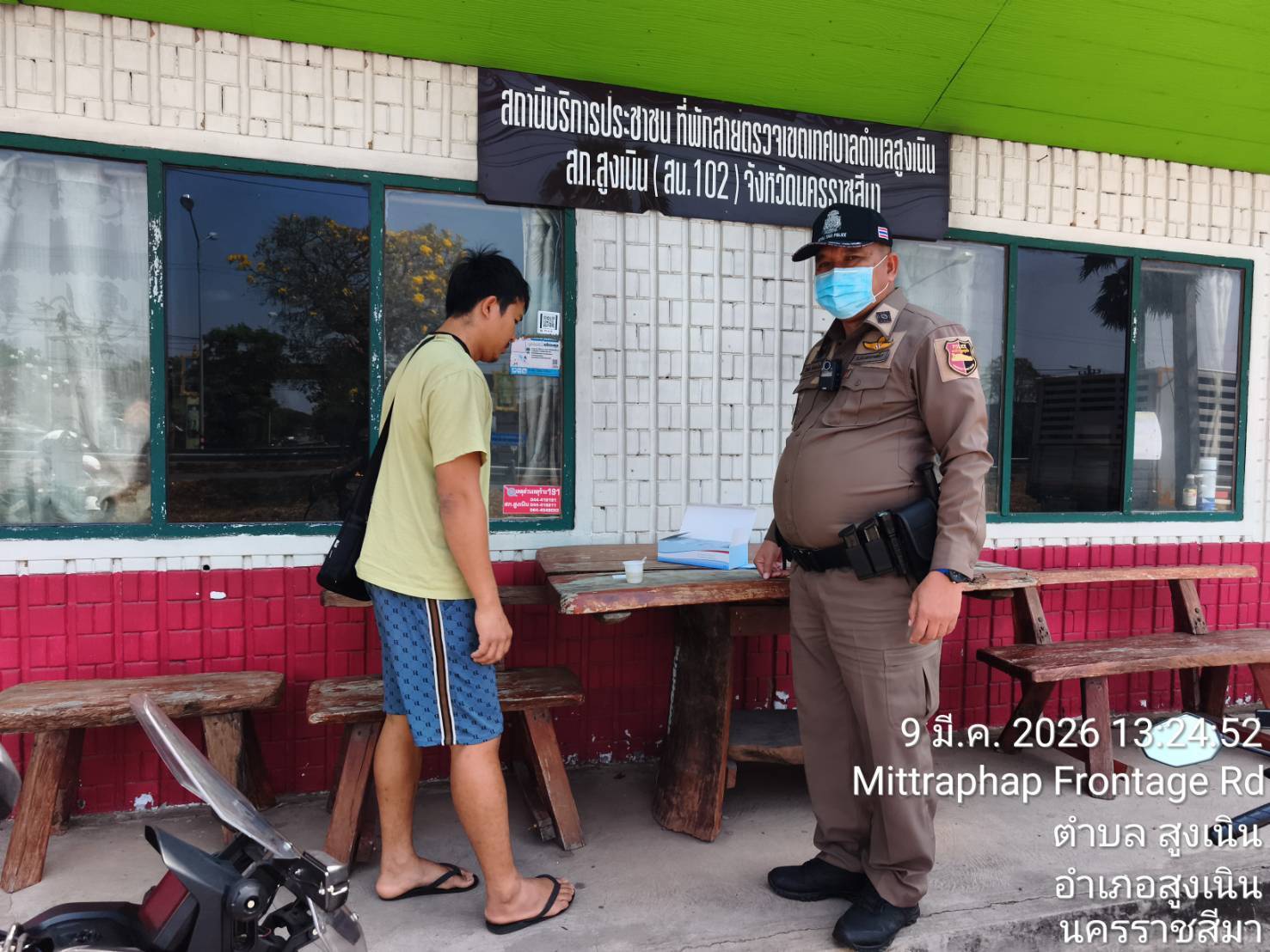 สภ.สูงเนิน ภ.จว.นครราชสีมา ประจำวันที่ 9 มี.ค. 2569 เวลา 07.45 น. พ.ต.ท.เสรี อินคง สวป.สภ.สูงเนิน พร