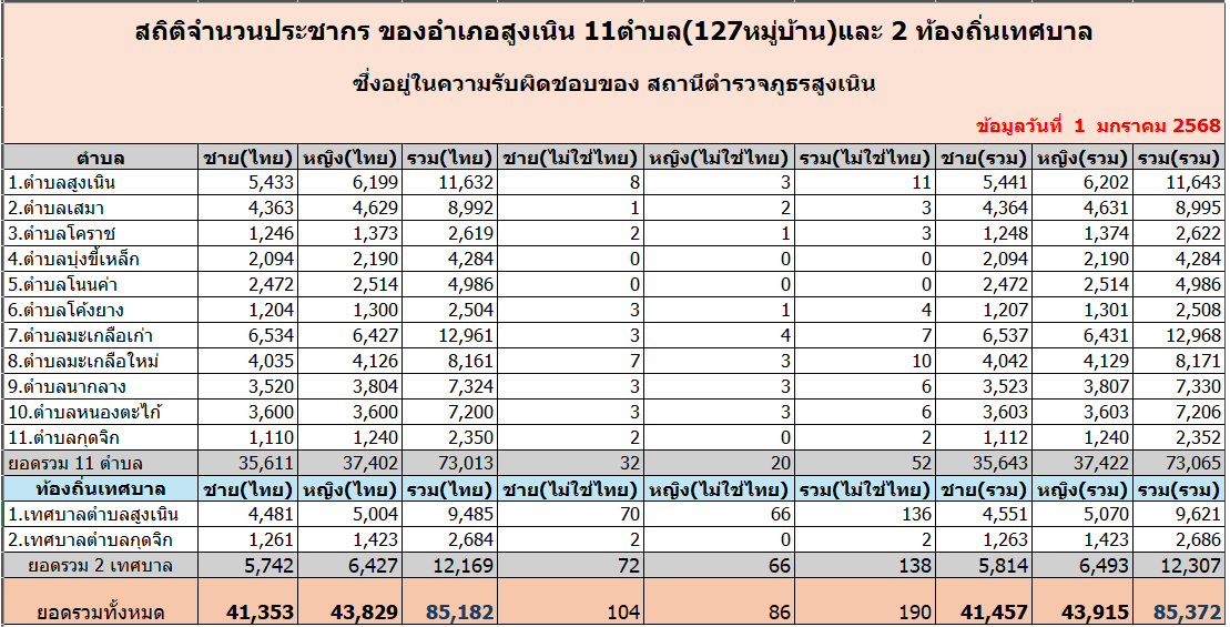 ข้อมูล ณ วันที่ 1 มกราคม 2568